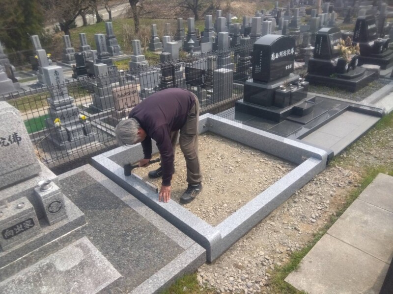外柵の設置工事です(加賀市塚谷町墓地にて)